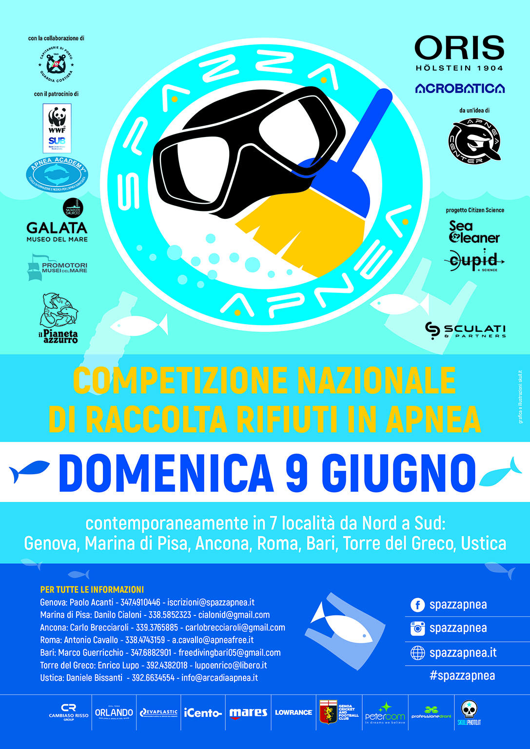 Siamo fieri di partecipare il prossimo 9 Giugno alla sesta edizione di “SPAZZAPNEA – Operazione fondali puliti”.